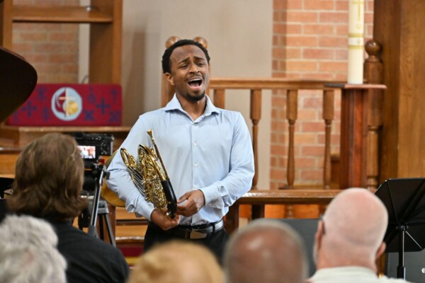 2025 VBF Emerging Artists Weverton Santos and Logan Wadley performed Thursday, June 5 at First United Methodist Church. Santos, shown here, excelled in his performance with the horn and delighted attendees with his vocals.
